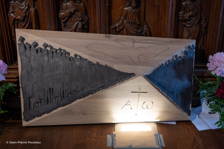 À la suite d’échanges sur le bicentenaire du diocèse et la démarche synodale vécue en Église, avec François Rouillot, artiste sculpteur à Island près d’Avallon, l’idée est venue de réaliser une œuvre d’art pour inscrire notre époque dans l’histoire de la cathédrale d’Auxerre : un coffre en bois sculpté pouvant contenir des messages de notre évêque, de nos communautés chrétiennes et religieuses, adressés aux chrétiens dans 200 ans, pour leur témoigner de notre foi et de notre espérance, de notre manière de vivre la joie de l’Évangile aujourd’hui.