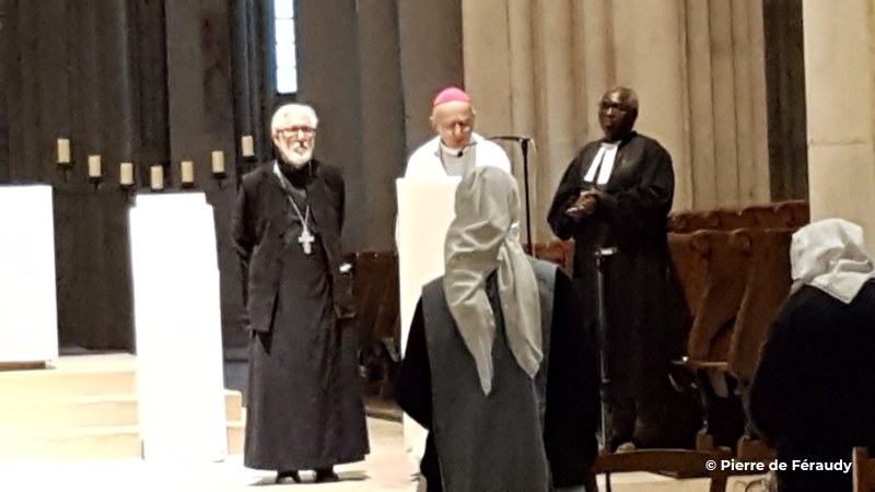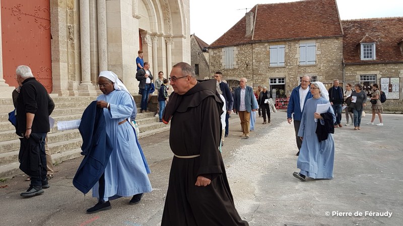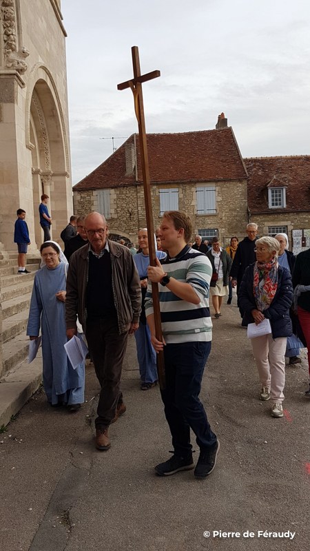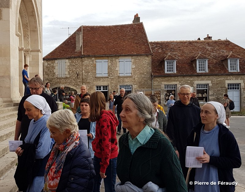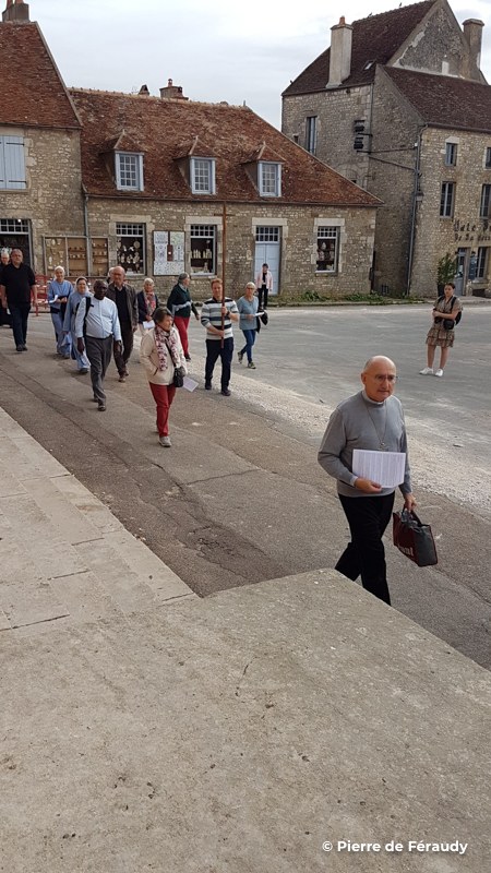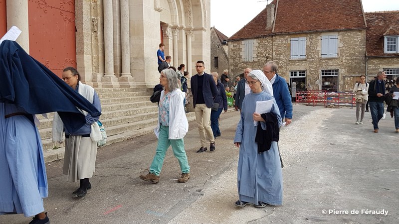 Accueillie par Mgr Hervé Giraud, le Pasteur Élysé Pangu Mayenga et le Père Stephen Headley, une quarantaine de personnes a marché depuis La Cordelle jusqu'à la basilique de Vézelay, où une soixantaine de personnes les attendait pour un temps de prière œcuménique pour la paix.