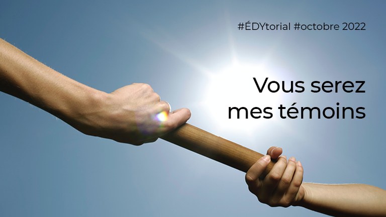 Nous pouvons être témoins de multiples façons. Lorsque nous participons à un beau rassemblement ecclésial, nous aimons spontanément raconter à notre retour ce que nous avons vécu, peut-être au risque parfois de fatiguer notre entourage par la longueur de nos récits Ainsi les personnes présentes le 1er octobre à Sens n’ont sans doute pas manqué de le faire auprès de leurs proches ou au sein de leur communauté paroissiale.