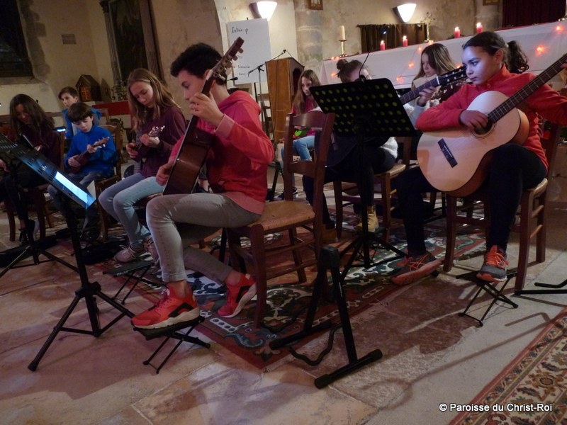 Des ados, suite à un stage de musique pendant les vacances de la Toussaint, ont chanté et jouer de la guitare.
