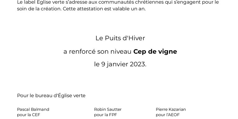 Nous sommes très fières de continuer notre engagement envers l’église verte