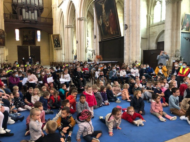 Tous les enfants de l'école catholique Saint-Louis Notre Dame de Villeneuve-sur-Yonne sont venus dans l'église pour la célébration de rentrée. Chaque classe a proposé un commandement de vie en commun. Et Jésus dans l'Évangile nous a donné le 10e qui résume tous les commandements : aimer son prochain comme soit même.