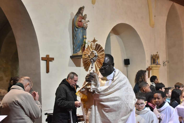 3ème dimanche Avent 2022 Gaudete, le dimanche de la joie Le 11 décembre dernier, 3ème dimanche de l'Avent, un évènement particulier s'est déroulé au sein de la communauté de la paroisse Ste Alpais: l'entrée en catéchuménat de six catéchumènes lors de la messe à Villeneuve-sur-Yonne, une septième catéchumène n’ayant pas pu être présente. Ils étaient entourés par la communauté présente malgré le froid de cette journée presque hivernale, petit troupeau rassemblé autour de son pasteur, lequel a tracé sur chacun d'entre eux la croix du Christ vers lequel ils vont cheminer. Moment revêtu d'une certaine solennité et partagé avec les paroissiens. Après l’eucharistie un partage d'une tout autre nature a réuni les un(e)s et les autres autour d'un verre de l'amitié et de la fraternité, le vin chaud réchauffant les paroissiens heureux de vivre ce moment de convivialité.