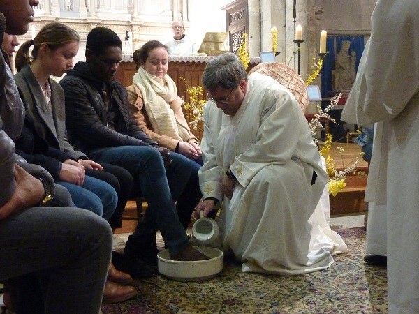 "Aimer et Servir" Une communauté priante s'est rassemblée autour de la Cène du Christ, en l'église Saint Maurice de Sens. Aujourd'hui encore, par l'Eucharistie, Jésus vient demeurer en nous et nous demeurons en Lui. Par le geste du Lavement des pieds, Il se fait serviteur. La procession et l'adoration du Saint-Sacrement ont prolongé la célébration jusque tard dans la nuit.