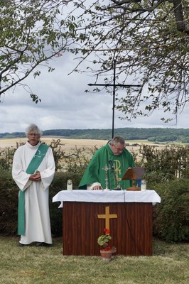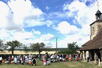 La messe était célébrée sur l'esplande de la chapelle Sainte Anne d'Aillant-sur-Tholon par le Père Grégoire assisté du Diacre François en présence de nombreux fidèles.