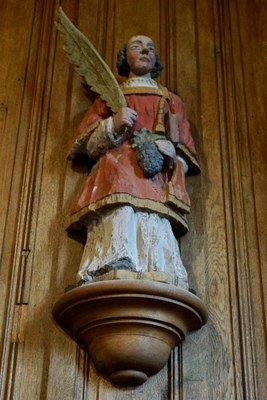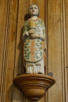On y pénètre par un porche appelé "caquetoir" qui précède la nef. Elle est ornée de plusieurs objets de grand intérêt, parmi lesquels une statue de Saint Eloi, une autre de Saint Vincent et, plus récemment, une statue de Saint Romain jusqu'ici absente de cet édifice.