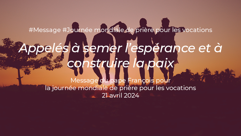 - Le dimanche 21 avril 2024 (4e dimanche de Pâques), toute l'Église est appelée à prier pour les vocations. "Les vocations naissent dans la prière ; et elles ne peuvent persévérer et porter du fruit que dans la prière" (pape François).