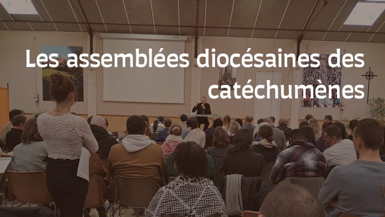 Photos : Assemblée des catéchumènes adultes, 17.01.2026, Auxerre, salle Marie Noël (à gauche) ;