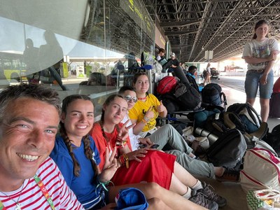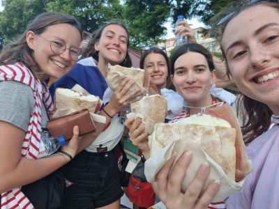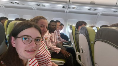 Avec 1h de retard, nous finissons quand même par arriver à Lisbonne. Le temps est bon, le ciel est bleu et nos entrées dans ce journal de bord vont se faire plus courtes mais plus intenses ! JMJ, heures de marche, jeunes à rencontrer, et prières pour nos parrains et nos proches, notre programme s'étoffe à vue d'œil. A bientôt pour la suite de nos aventures !