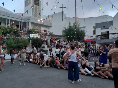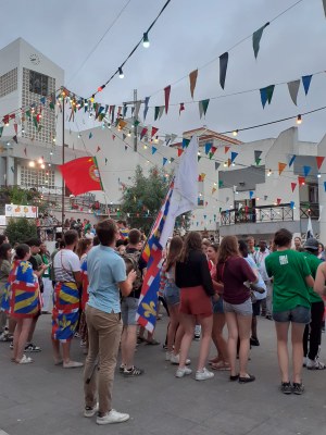 Nous nous retrouvons le soir à la paroisse qui nous accueille pour une fête conviviale. Musique, repas et bières sont au rdv, de quoi rencontrer les Portugais et français logés dans le quartier.
