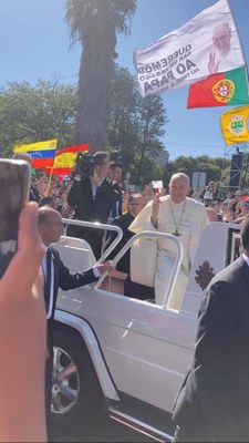 De même qu'hier, nous avons commencé notre journée à la paroisse par laquelle nous sommes accueillis pour la catéchèse, sur la question de l'amitié sociale, puis la messe, animée par le Gabon. Ensuite, nous nous sommes rendus au parc Edouard VII, pour accueillir le Pape, que certains d'entre nous ont eu la chance et la grande joie de voir de près !! Enfin, le groupe s'est séparé pour la soirée au programme libre : rencontres dans les rues de Lisbonne, concerts sur les places, spectacle sur Sainte Marguerite-Marie, shopping, ou simplement une occasion de se coucher tôt !