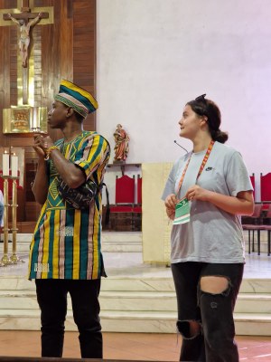 Nous commençons par un temps spirituel en groupe avec les laudes pour bien commencer la journée. Le temps passe vite, nous allons retrouver d'autres français pour un temps de catéchèse dans la paroisse qui nous a accueillis. C'est un groupe du Burkina Faso qui anime la matinée autour de la thématique de l'écologie. Chacun peut participer et s'exprimer sur différentes questions posées autour de l'écologie.