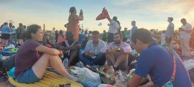 Enfin arrivé sur la plage nous fûmes accueillis par des volontaires et des chaffeurs de salle survoltés. Un beau moment de prière, de louange et d'adoration s'en suivit. Dieu est bon !
