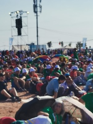 Après une marche harassante avec 2 millions de jeunes sous un soleil de plomb, nous sommes enfin arrivés en Terre Promise : le lieu de la veillée. Le Pape François est venu nous enseigner sur notre condition de jeunes avec beaucoup de bienveillance, de dynamisme et de sagesse. Puis, adoration du St Sacrement avec un silence magnifique, malgré notre grand nombre.