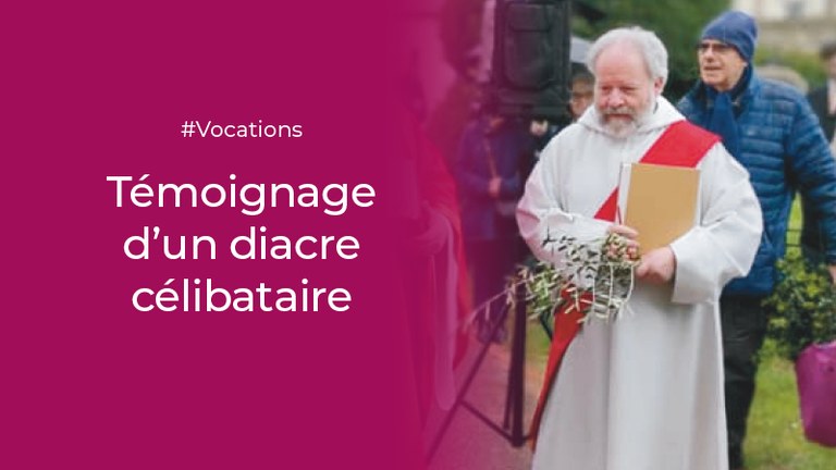 Ordonné diacre permanent en juin 2012 à la cathédrale de Sens par Mgr Yves Patenôtre, célibataire, je me suis engagé, comme les prêtres, à le rester et je ne le vis pas comme une contrainte mais comme une plus grande disponibilité. Ma mission principale est le catéchuménat.