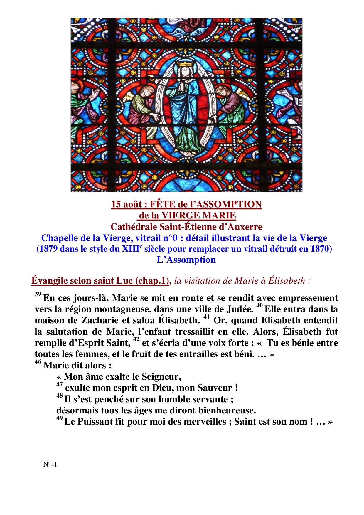 Assomption de la Vierge Marie : 15 août