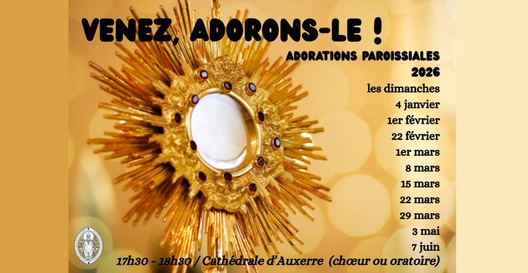 - La paroisse vous invite chaque mois à venir adorer ensemble notre Seigneur, ne manquez pas ces moments privilégiés de cœur à cœur avec lui!