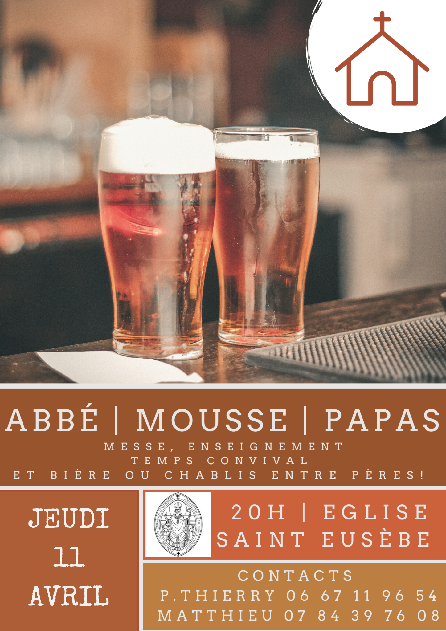 - Messe, enseignement, temps convivial et bière ou chablis entre pères !