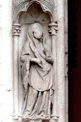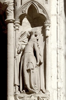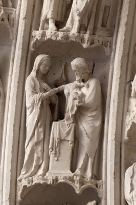 On peut voir cette sculpture dans les voussures du portail sud de la façade de la cathédrale d'Auxerre (l'entrée principale), à mi-hauteur sur la gauche.