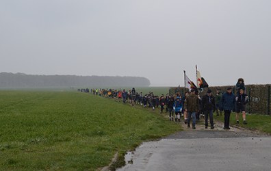 Après une marche de 25 km sous la neige pour les plus résistants, au cours de laquelle nous avons fait plusieurs haltes spirituelles, nous sommes arrivés vers 12h15 à Ferrières pour la messe dominicale dans la chapelle Notre Dame de Bethléem.
