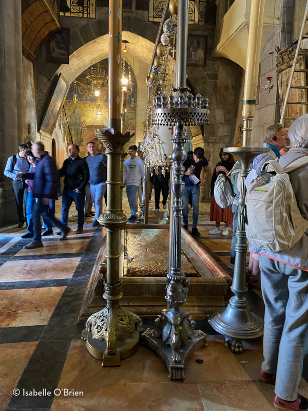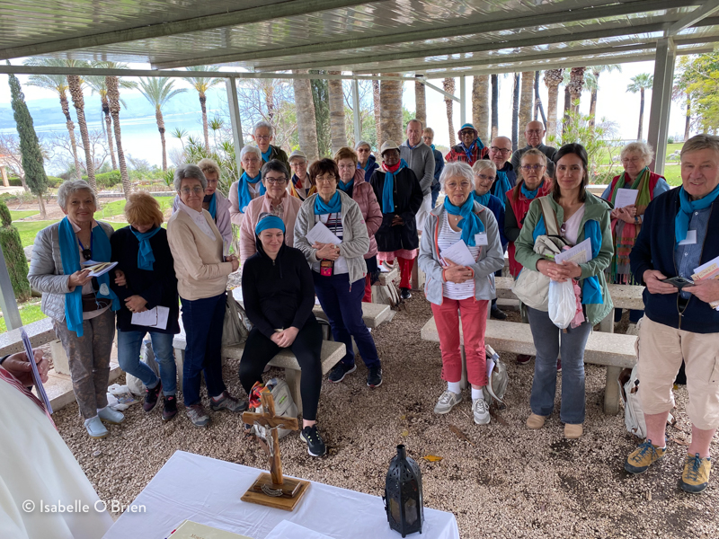 Marcher dans les pas du Christ est très émouvant mais quelques fois, j’ai été plus touriste que pèlerine dans certains endroits si symboliques. Je rentre très très heureuse d’avoir fait ce pèlerinage et d’avoir vécu ces moments forts : le renouvellement des promesses de notre Baptême dans les eaux du Jourdain ; la messe au bord du lac, lieu de la multiplication des pains et des poissons et la méditation au coucher du soleil devant le lac de Tibériade.