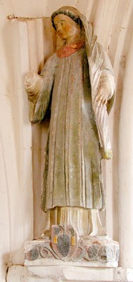 Illustration : saint Vincent, pierre polychrome, XVIe s. église de Charentenay. Le saint, revêtu de la dalmatique des diacres, tient en main la palme du martyre. Sur le socle : motifs viticoles (couteau à vigne, grappes de raisin).