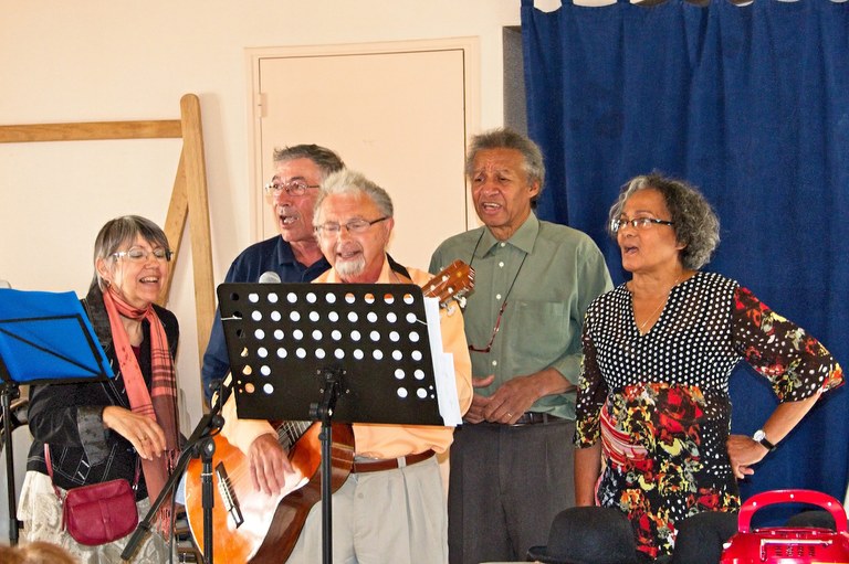 Gérard, Lyse, Félix, Erica et Alain avaient préparé des chants et bien sûr, Gérard était à la guitare. Quelle joie de tous se retrouver et de fredonner des chansons en dégustant des gâteaux "faits maison". Merci à tous pour ce beau moment de partage et de convivialité.