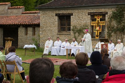 Notre évêque, en présence de plusieurs prêtres du diocèse, a célébré la messe en plein air devant 170 personnes.