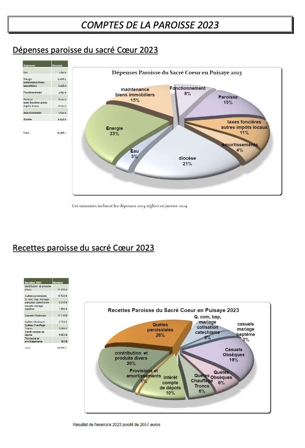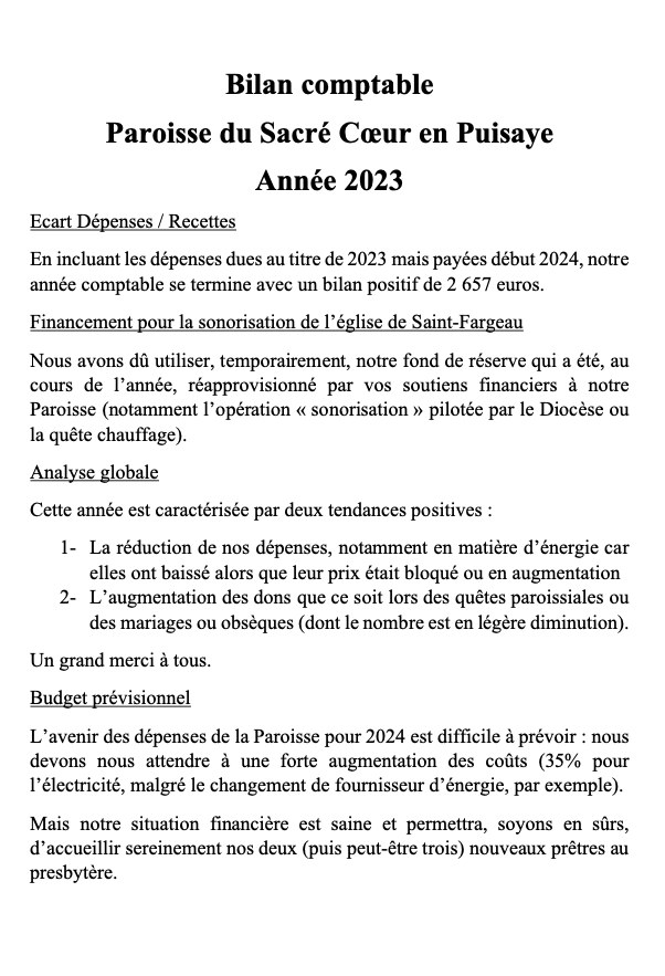 Bilan comptable Paroisse du Sacré Cœur en Puisaye Année 2023