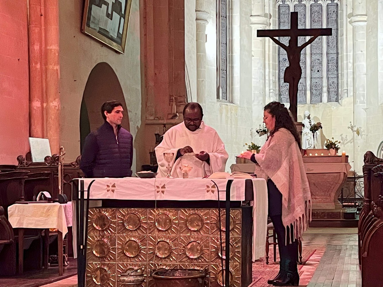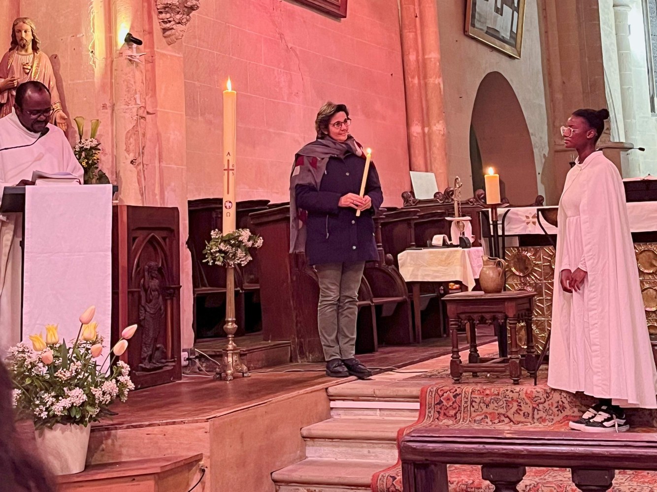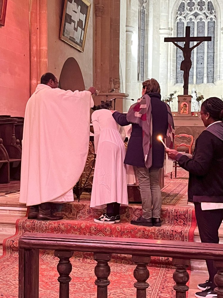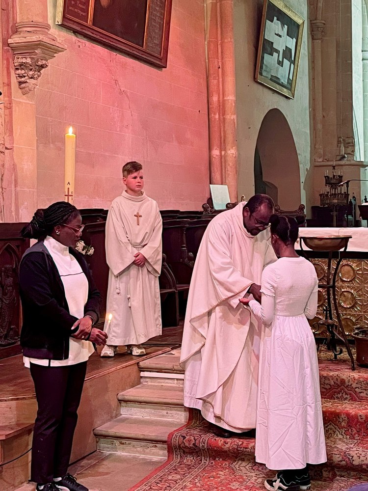 Lors de la Vigile Pascale célébrée par le père Jean-Marie, Ayaba a été baptisée, Justine et Virgil ont fait leur première communion.