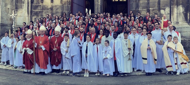 Dans une cathédrale d’Auxerre comble, au cours de la célébration présidée par Mgr Giraud, 117 personnes ont reçu le sacrement de confirmation. Parmi elles, Marie et Damien de notre paroisse et Zoé, Jean-Paul, Céline, Blandine, Thierry et Jean-Claude de notre doyenné. Plusieurs paroissiens étaient présents lors de cette belle célébration.