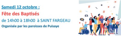 Samedi 12 octobre : 𝐅𝐞̂𝐭𝐞 𝐝𝐞𝐬 𝐁𝐚𝐩𝐭𝐢𝐬𝐞́𝐬 de 14h00 à 18h00 à SAINT FARGEAU