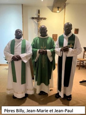 Les pères Billy MBODA, Jean-Marie BANA et Jean-Paul BEYOKOL sont en charge des quatre paroisses de notre doyenné.