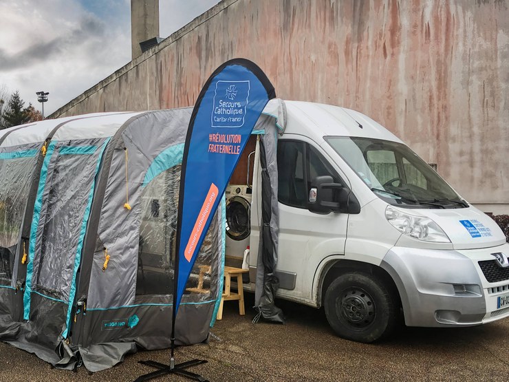 Le Secours Catholique a lancé en Puisaye une laverie solidaire itinérante. Un petit camion utilitaire est aménagé en laverie mobile équipée de 2 lave-linge et d'un sèche-linge. Il permet également aux bénévoles d'aller à la rencontre de personnes isolées, parfois en difficulté, d'apporter une aide administrative et d'être à leur écoute.
