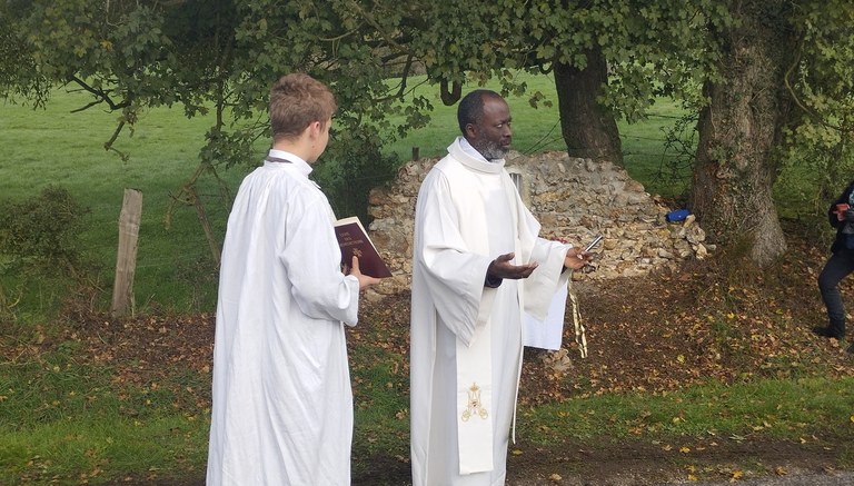 Restauration et bénédiction du mur de la chapelle de la pitié à Vaudeurs.