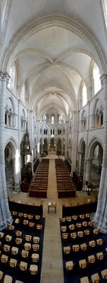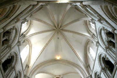 Gothique primitif 12° - 13° ; nef à collatéraux, chœur à déambulation, triforium, petit portail 13°, grand portail reconstruit 18° ; sur le petit portail sud, fers à cheval en ex-voto à St Martin ; 2 statues d’apôtres 13°, toile de la mort de Joseph, toile de la Cène, stalles avec miséricordes 16°.