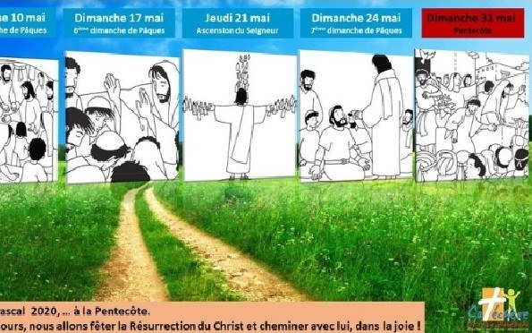 Vous trouverez ci-dessous deux documents : un sur l'Ascension, l'autre sur la Pentecôte. Vous y trouverez une Parole de Dieu, des vidéos et des exemples de coloriages. Lisez, regardez... et à vos crayons (feutres, peinture...). Faites un dessin ou un coloriage sur l'Ascension ou la Pentecôte !