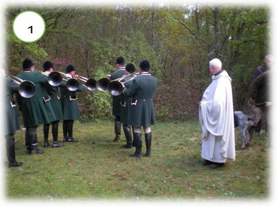 Fidèles au rendez-vous, les chasseurs étaient présents avec leurs chiens. Les sonneurs du Rallye Au Cerf Roy ont accompagnés la célébration.