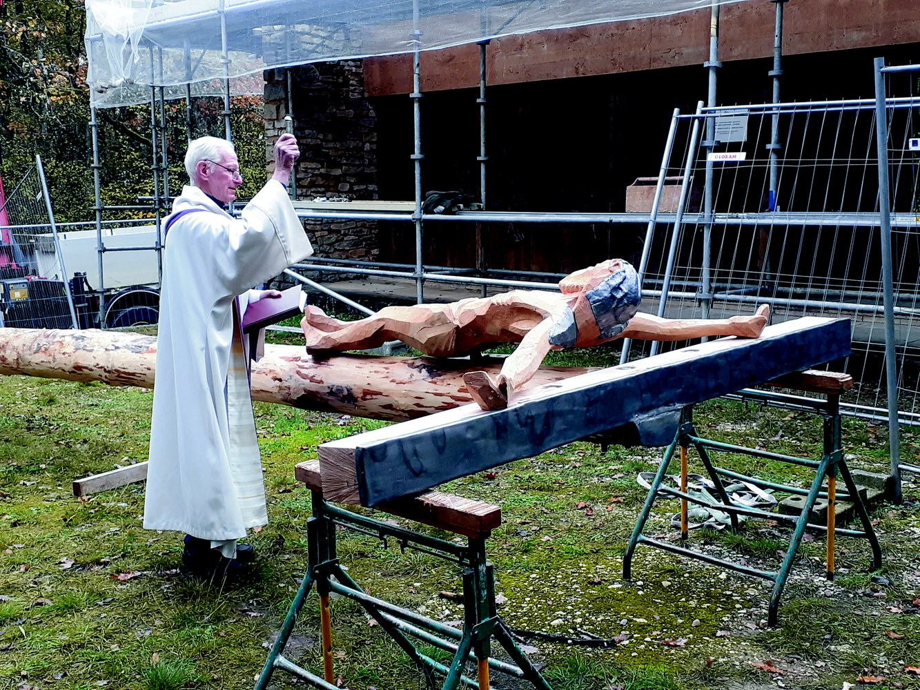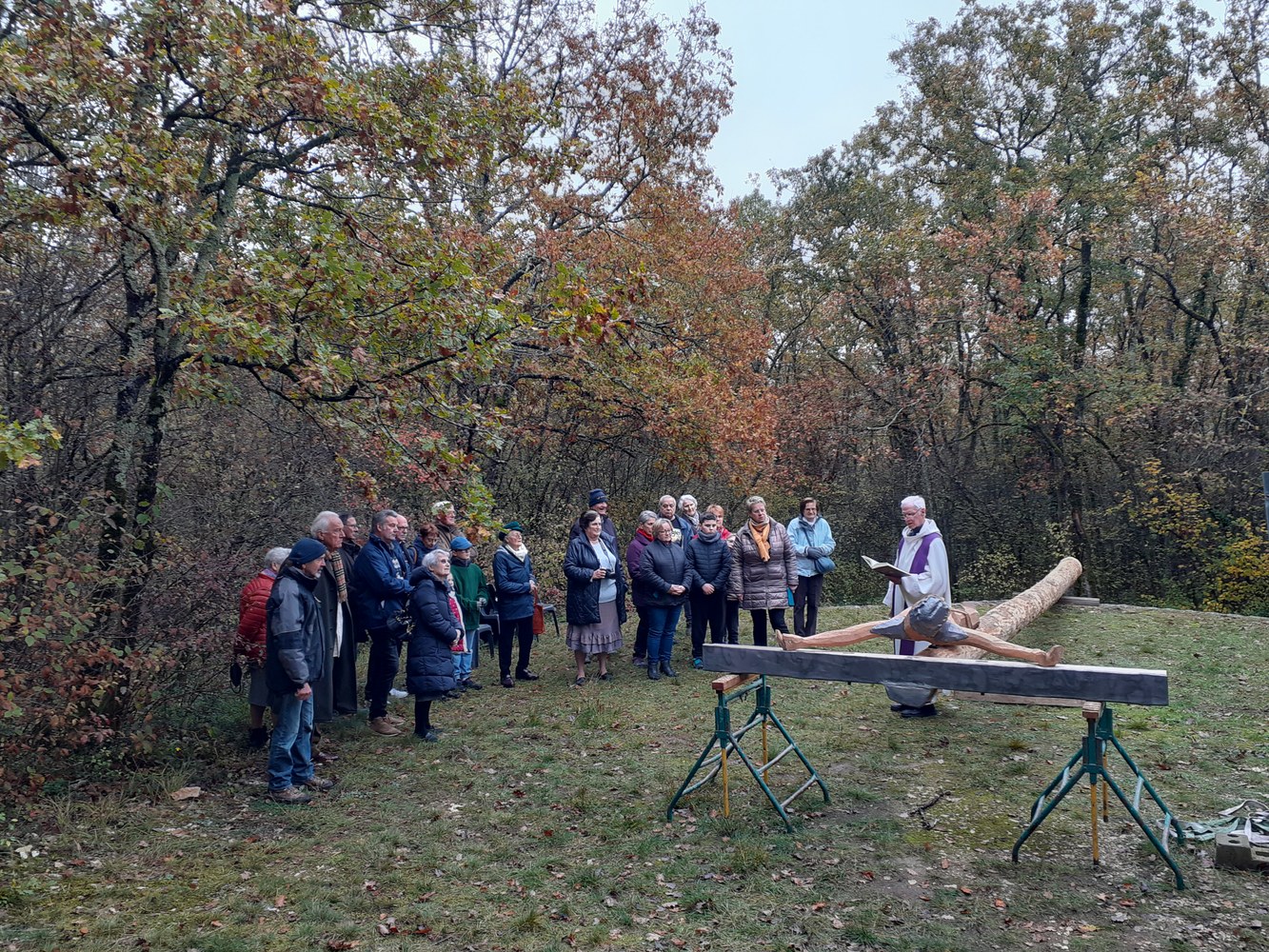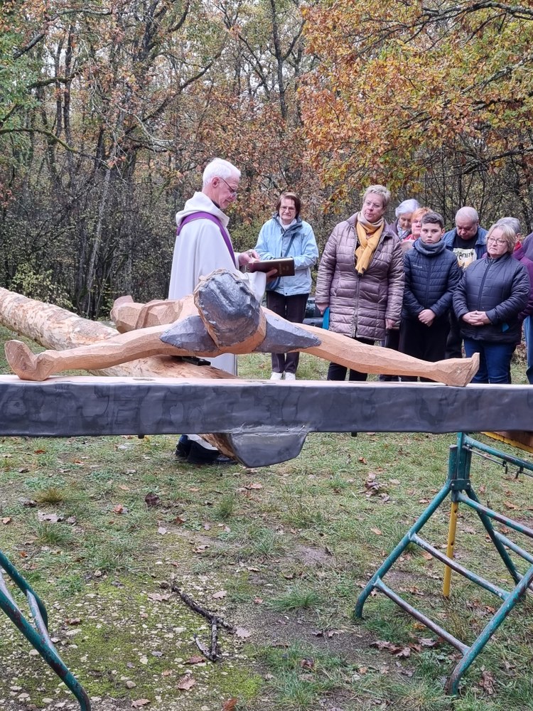Jeudi 4 novembre 2021, dans le cadre de cette restauration, il a été procédé à la bénédiction par le frère Raoul, curé de la paroisse Saint-François du Vézelien et à l’élévation d’un Christ en croix, sculpté par Yves Varanguin artiste local de Mailly-la-Ville, dans l’esprit de Marc Hénard : la croix servant de clocher.