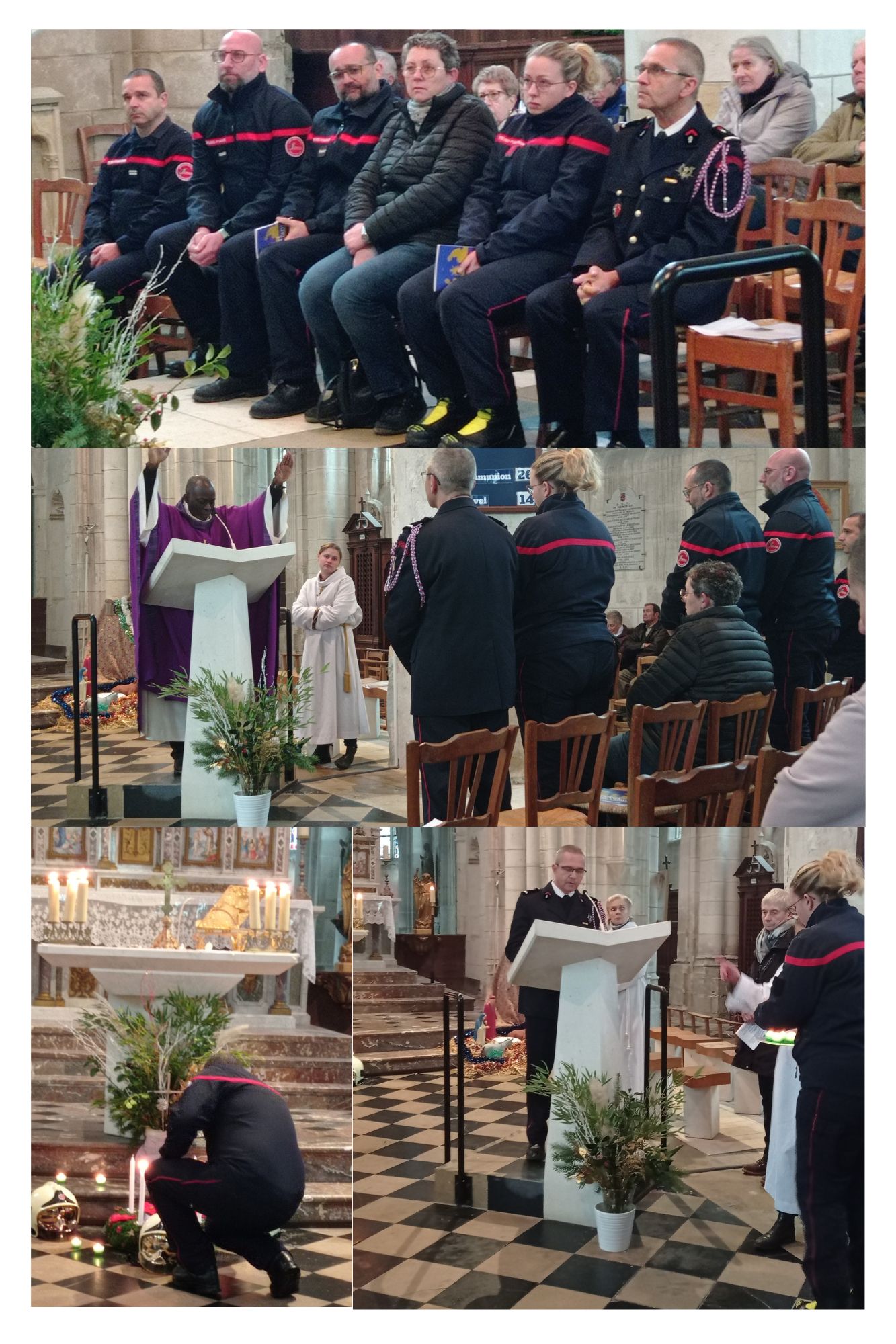Un hommage particulier a été rendu aux dix sapeurs-pompiers qui ont perdu la vie dans l’exercice de leur fonction en 2025 en France. À chaque énoncé de leur nom, une bougie a été déposée devant l’autel.