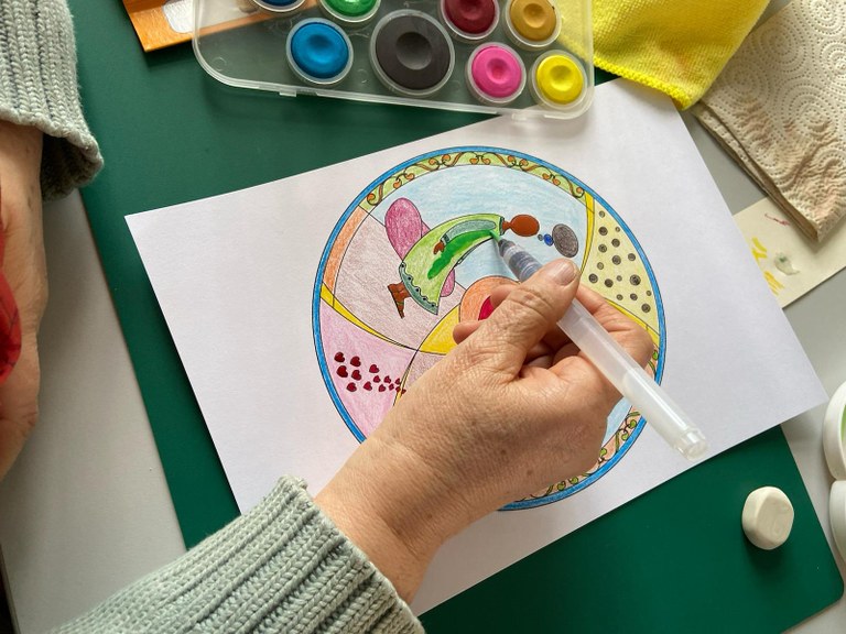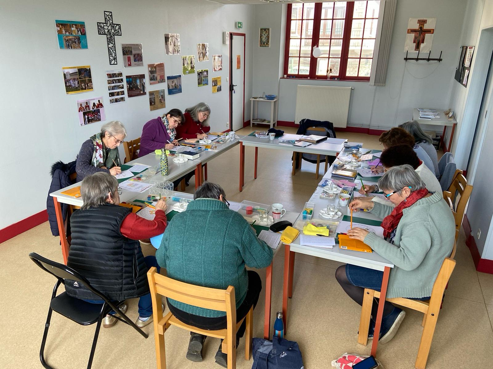 10 personnes se sont retrouvées pour étudier des textes bibliques et méditer ensuite la Parole avec les formes et les couleurs, grâce aux mandalas bibliques.