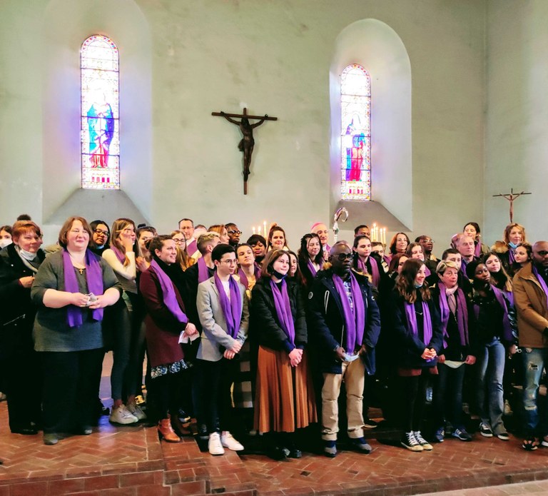 Une écharpe violette leur a été remise en signe de cette dernière ligne droite, avant la blanche du baptême.