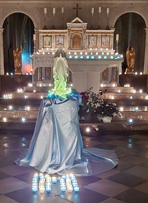 Un des temps forts de la veillée fut l’invitation à chaque participant à exprimer sa gratitude envers la Vierge Marie. Chacun pouvait déposer un mot et un lumignon devant l’autel, symbolisant une intention de prière personnelle. Cette démarche, simple mais profonde, a touché les cœurs, donnant à chacun l’occasion de s’ouvrir à Marie et de lui confier ses pensées les plus intimes.