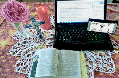 En dépit du confinement et de l'isolement qui en découle, nous vivons ces messes avec un sentiment de bien-être, plus grand dans la prière et la louange, grâce à l'équipe fusionnelle, inspirée par tes vagues d’Amour, qui réalise les feuilles de messes, les chants et l’animation en partage.