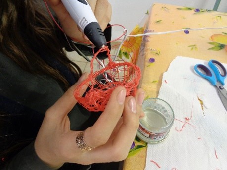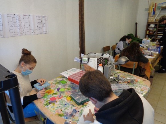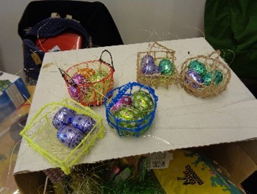 Samedi 12 février, après-midi atelier pour nous avec notre animatrice. Nous avons essayé le stylo 3D et la peinture diamant pour préparer des paniers et sujets sur bois pour Pâques.
