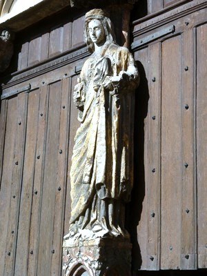 La façade est peu décorée sinon par cette magnifique sculpture de la Vierge, au trumeau, à hauteur d’homme, qui a résisté aux guerres et au vandalisme.