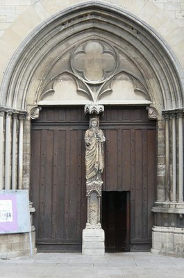 Notre Dame de Pont sur Yonne au trumeau du portail d’entrée