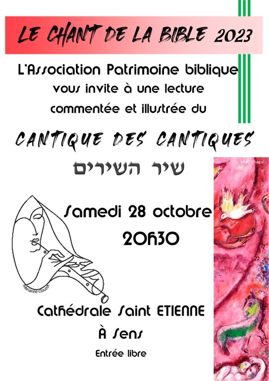 - L'Association Patrimoine Biblique vous invite à une lecture commentée et illustrée du cantique des cantiques.