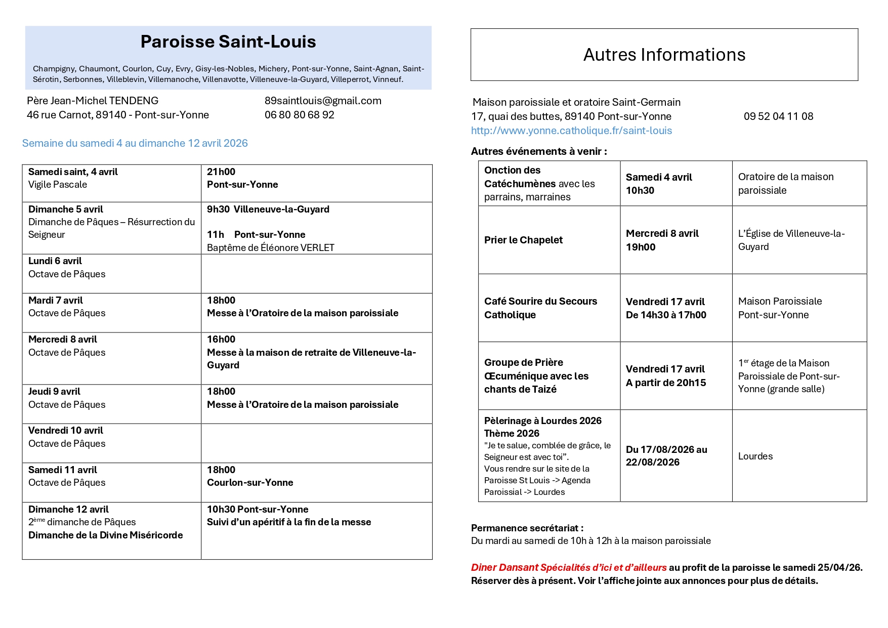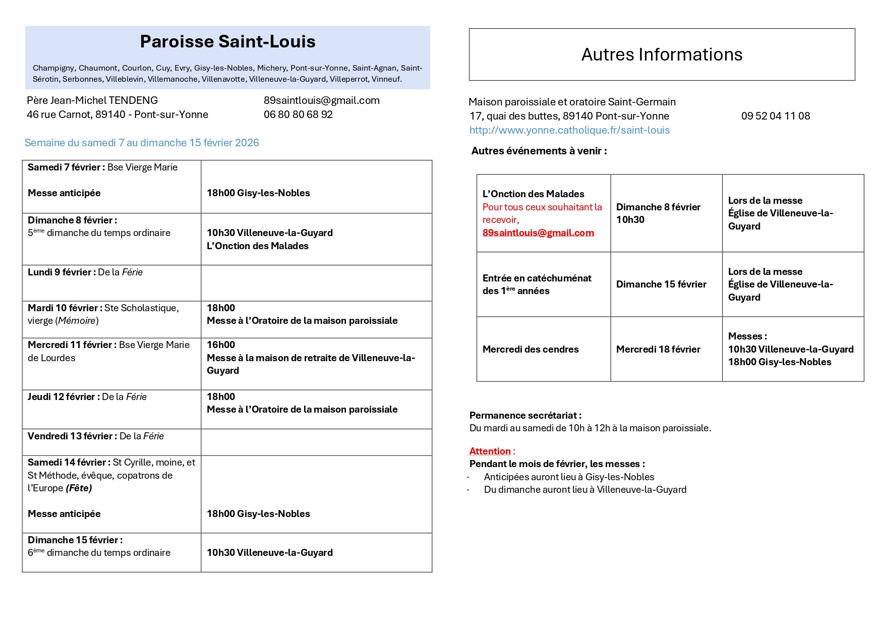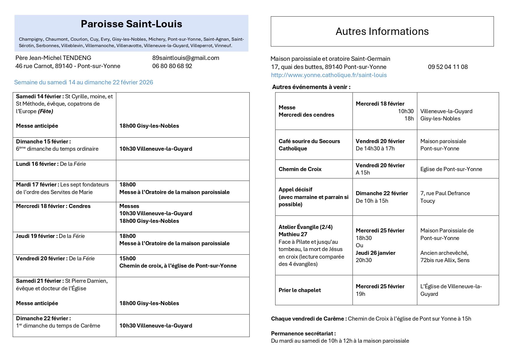 Retrouvez ici les annonces hebdomadaires de la paroisse.