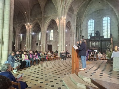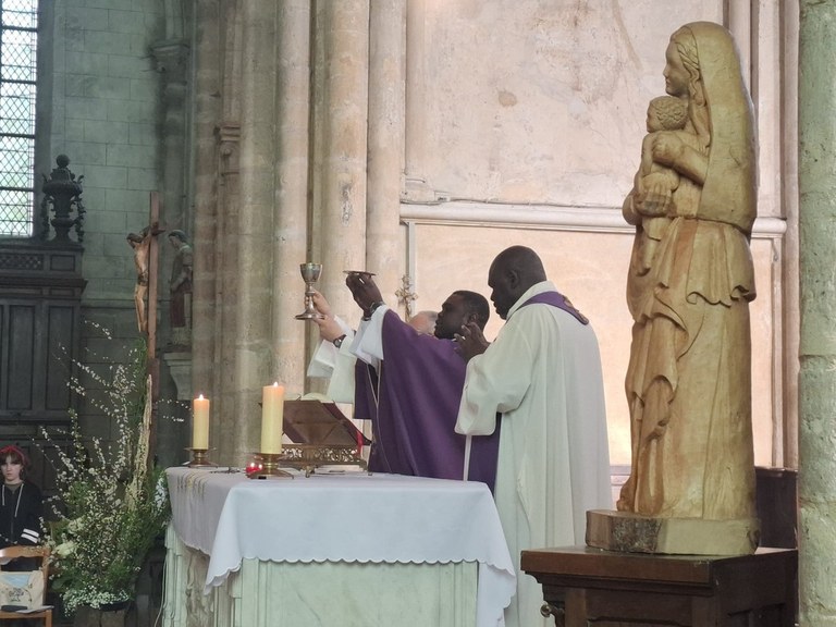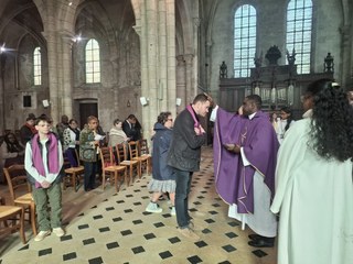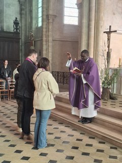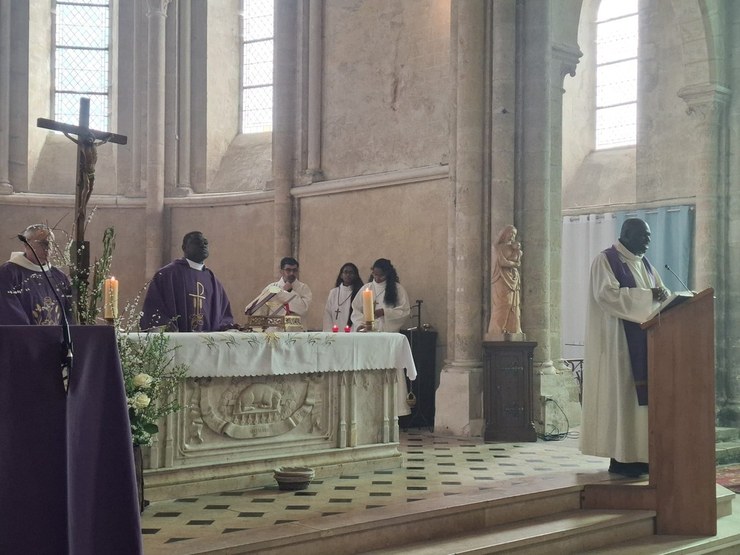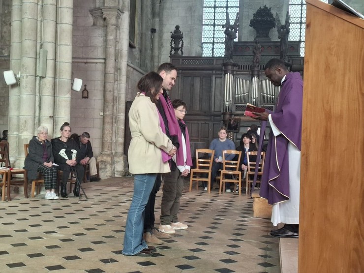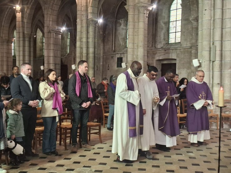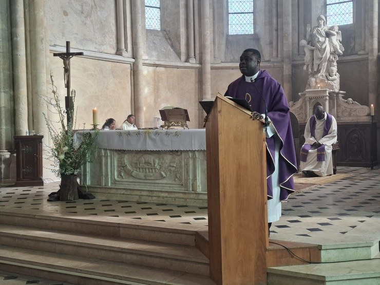 Le Père Simplice nous a rappelé combien la figure de la Samaritaine est inspirante pour ceux qui cheminent vers le baptême. Ce premier scrutin met en lumière l’un des symboles majeurs de ce sacrement : la soif spirituelle.